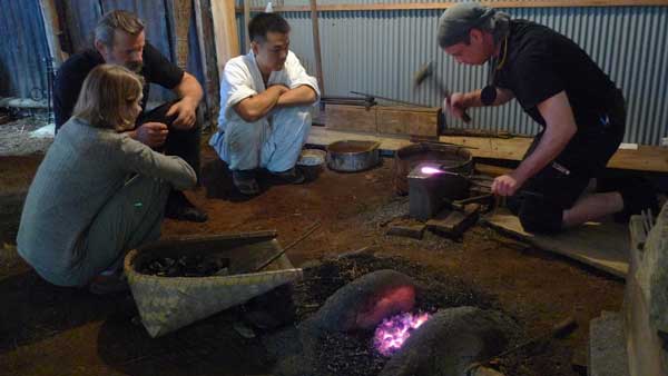 Firstly, our junior blacksmith, Gunther spent a while working with the Japanese smith who is a well known sword smith from the area. Whilst our translator, Rahel (seen here with our senior blacksmith Manne), understandably struggles with specialist words communication usually transcends words: