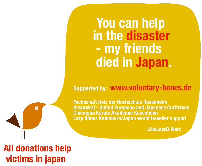Voluntary Bones is an organisation set up to support victims of the dreadful earthquake and tsunami in Japan. It has been formed by Marc Andrae, one of our Kesurokai craftsmen, who has long been a regular visitor to Japan and has many friends there who are struggling to rebuild their lives.