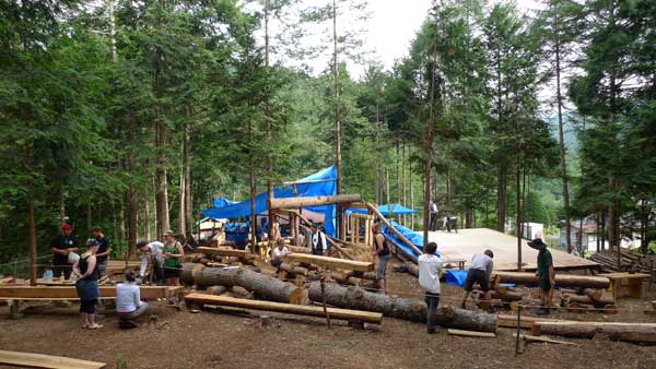 It was made in a similar way to the European building; each piece is cut to shape and each joint is tested individually before it is all finally put together, so the final construction happens amazingly quickly. Here's how it happened with a little additional explanation from the scale model that they used to guide their work. Firstly the base frame was constructed and the rear half boarded out: